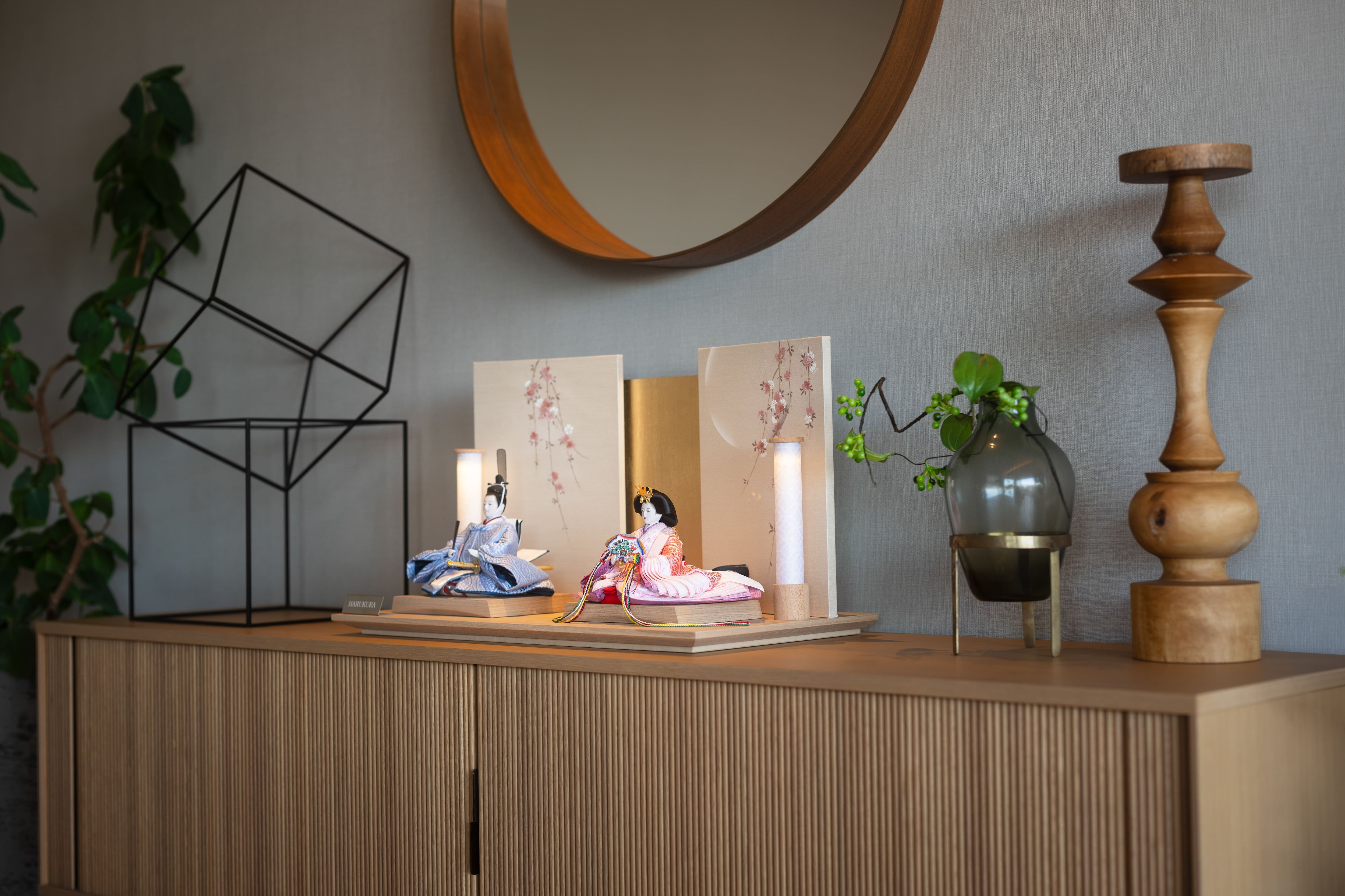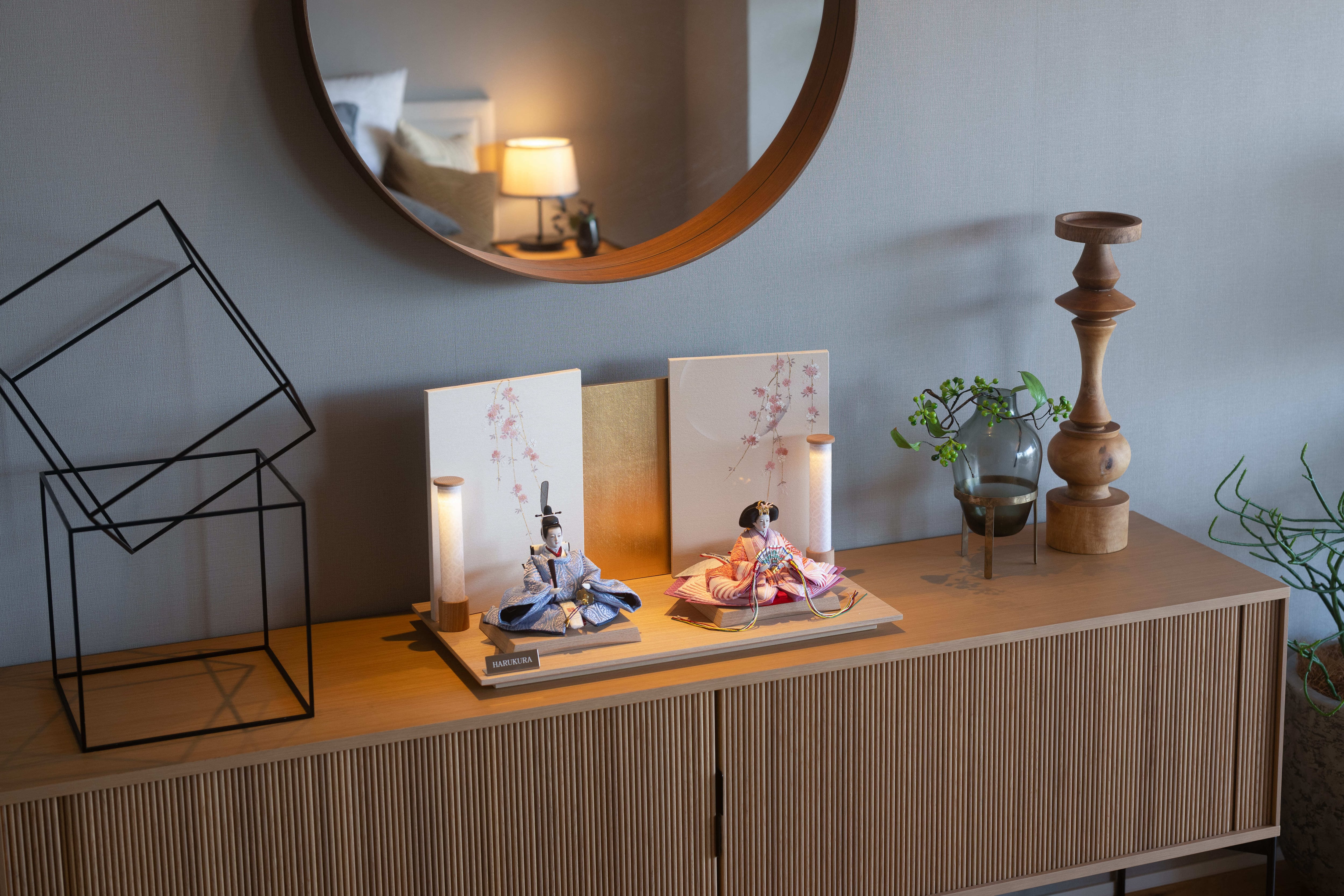 ペイルブルーとベビーピンクの雛人形『淡い恋』。