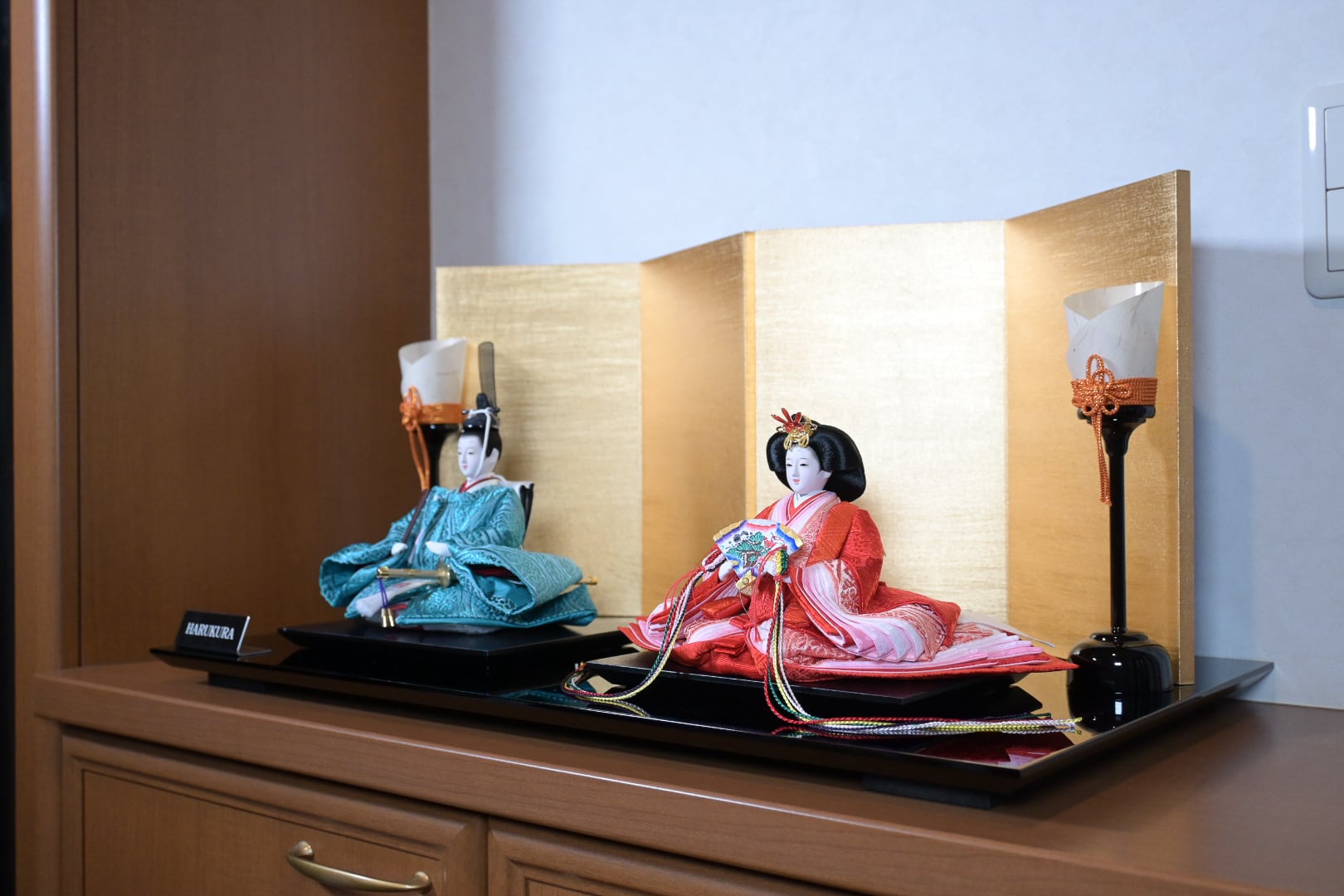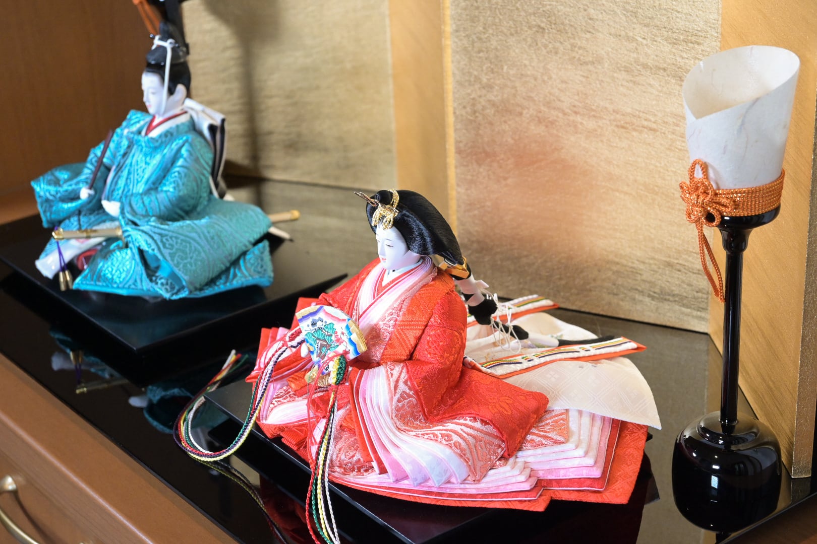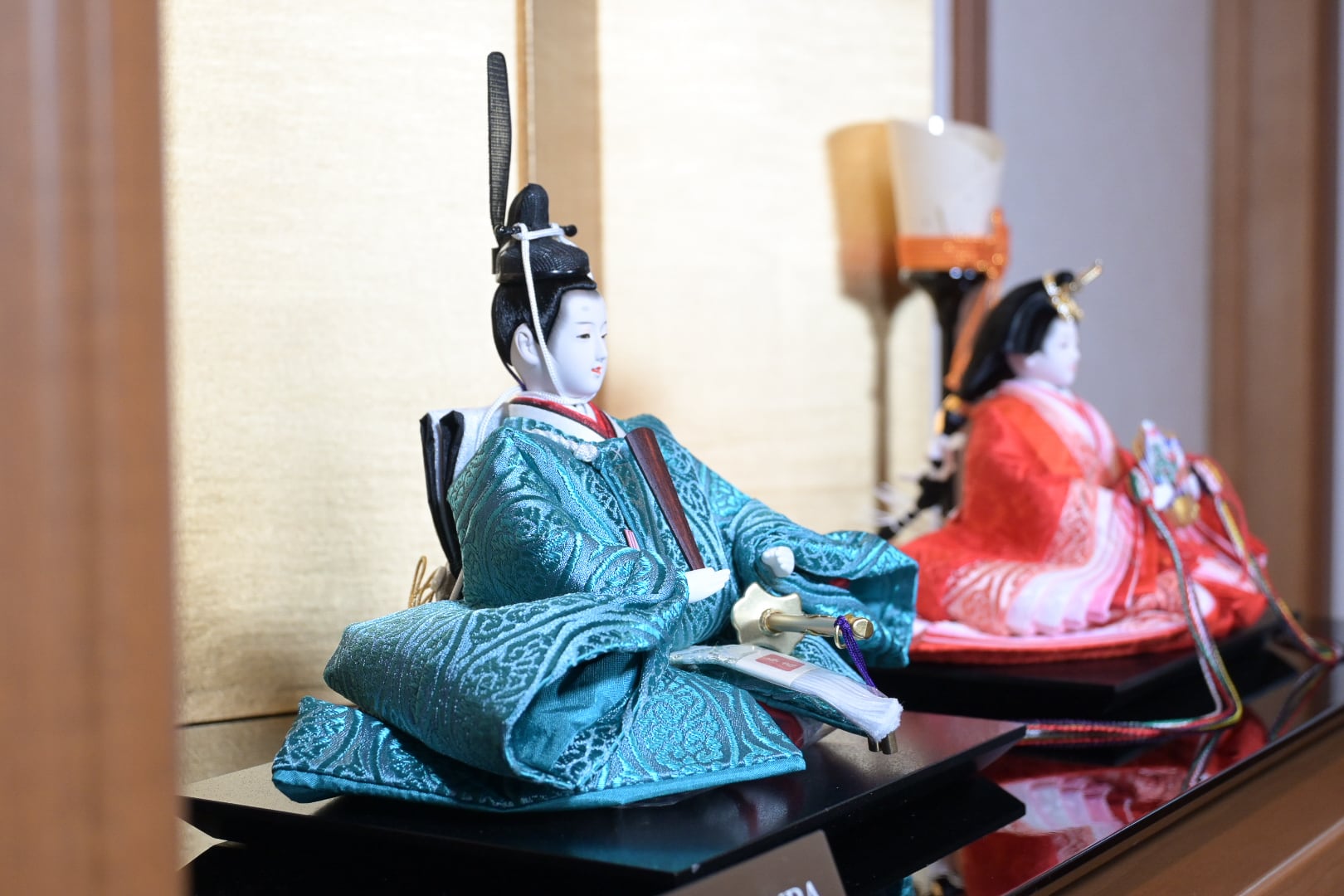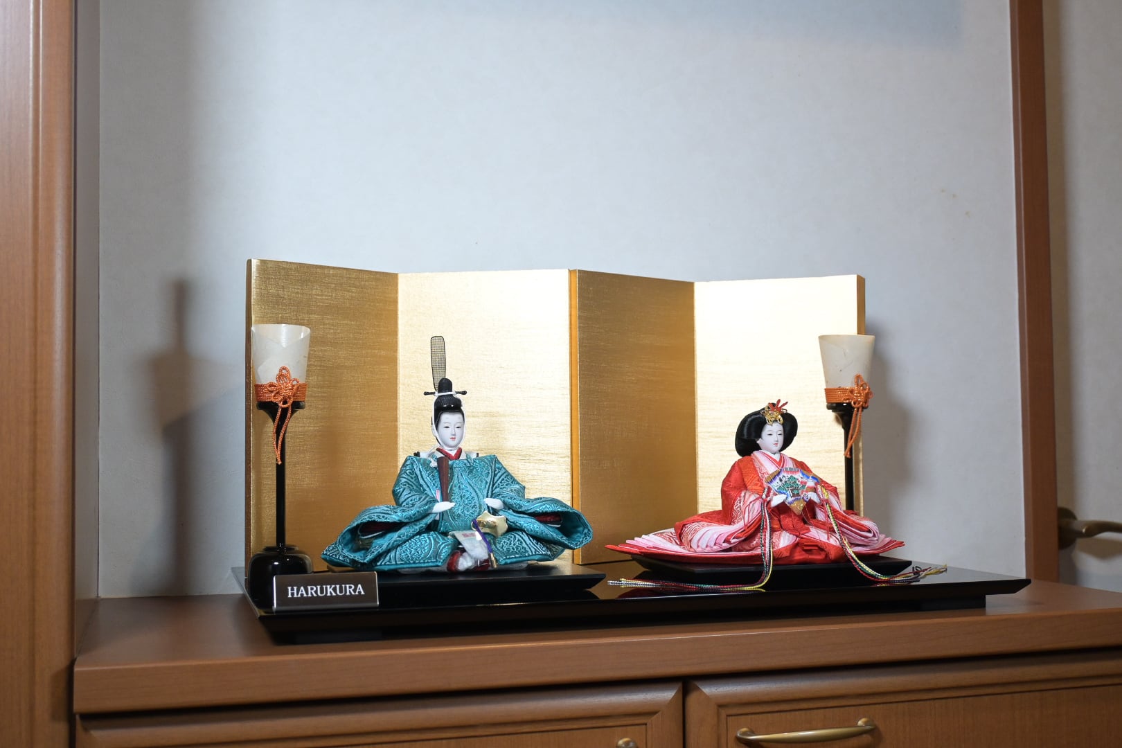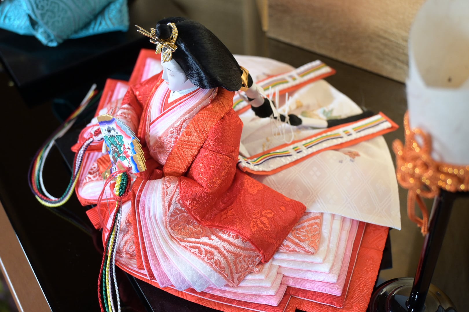 陽の光に当たるとより一層キラキラと輝く、まるで宝石のようなお雛様です。