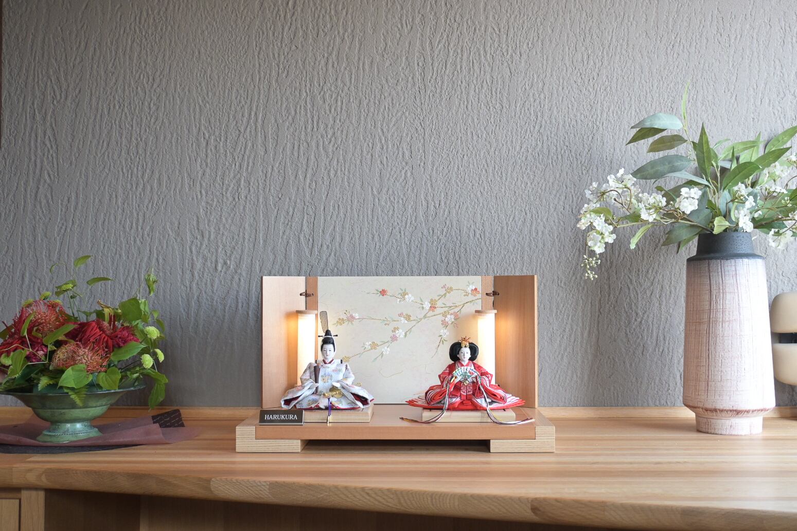 やわらかな春の光をまとったような、やさしい佇まい。セット幅約50cmの飾りやすいサイズながら、細部まで丁寧に仕立てた本格的なつくりが魅力です。今年は全8種ご用意しました。